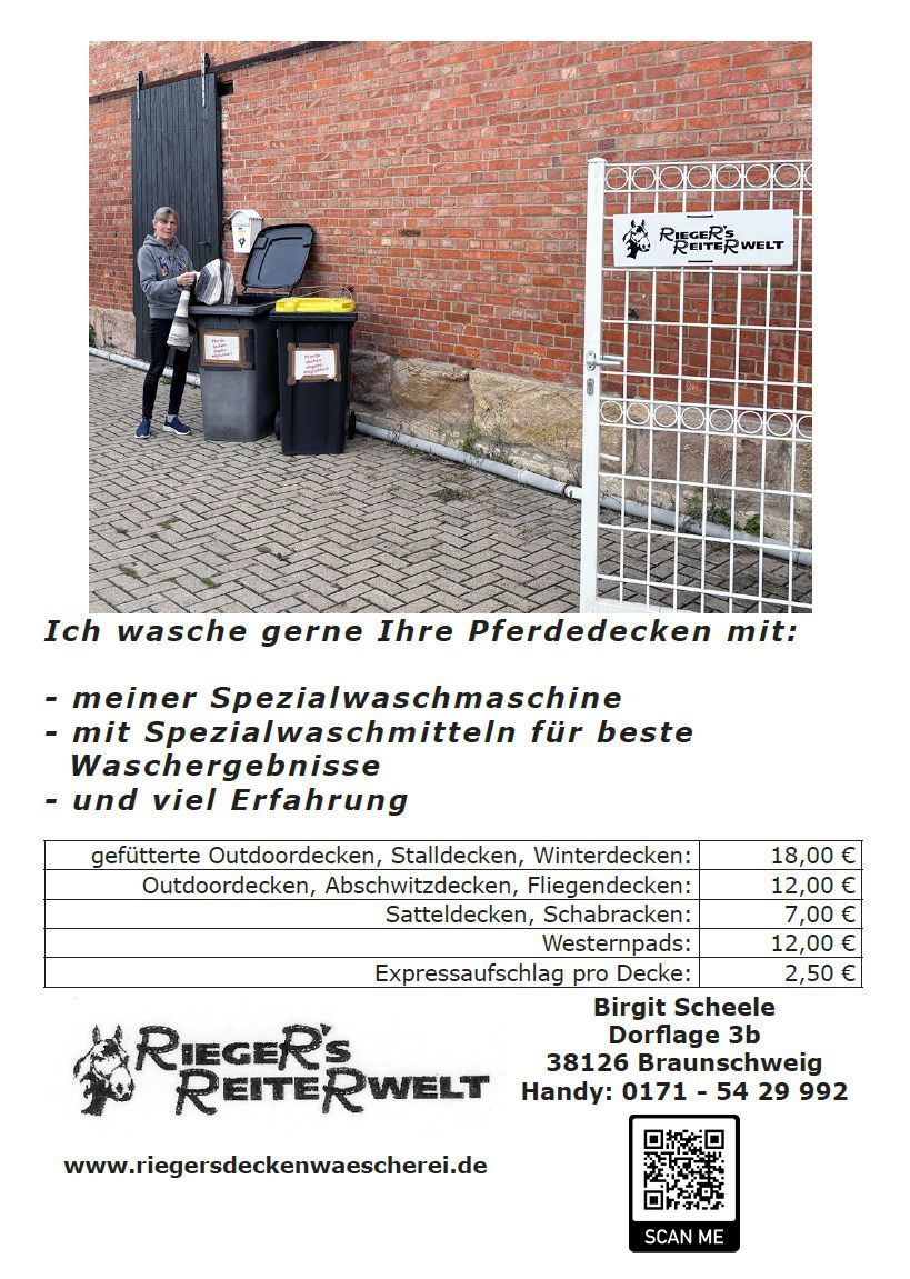 Ich wasche Ihre Pferdedecken und führe ausgewählte Pflegeprodukte und Putzzubehör für Pferd und Lederzeug.